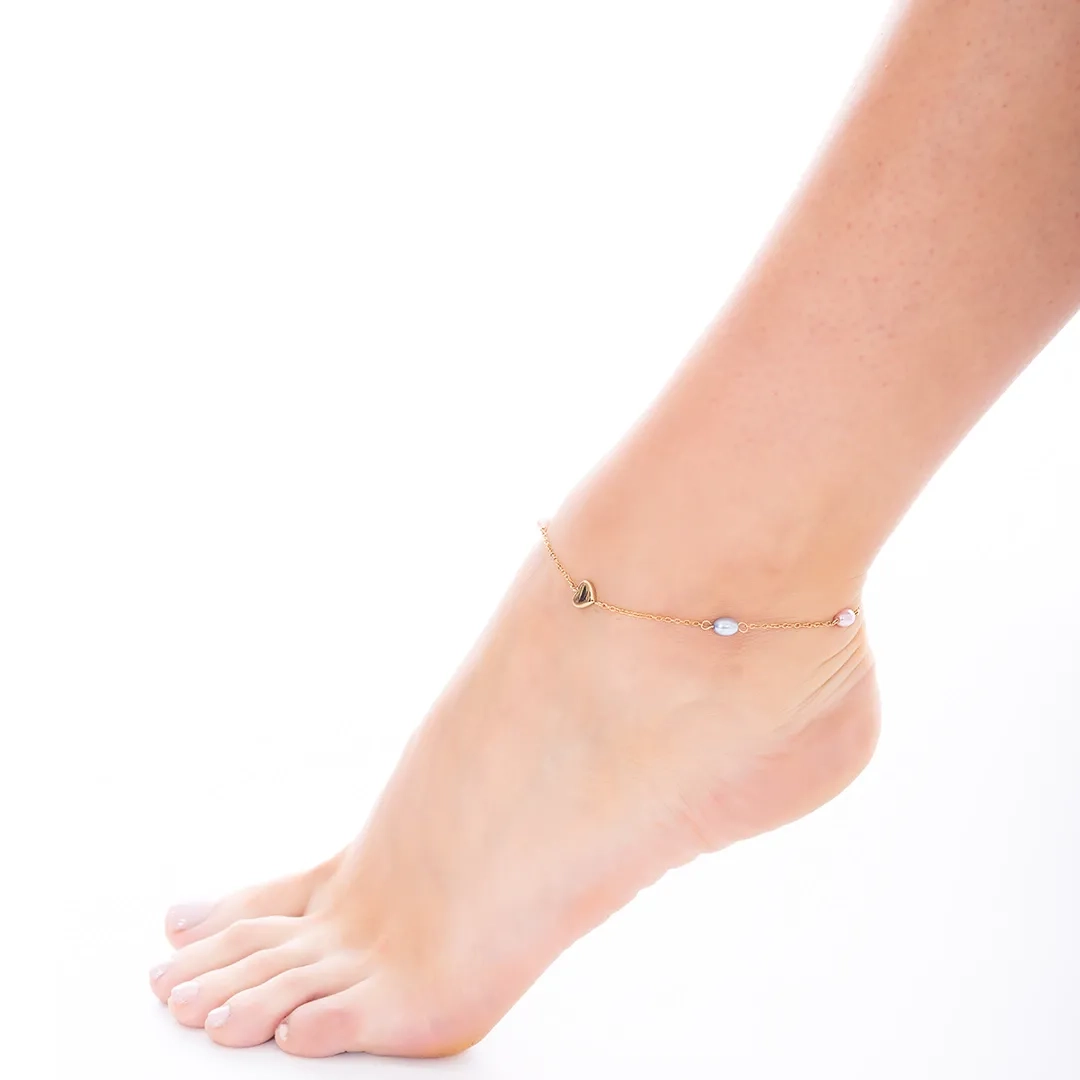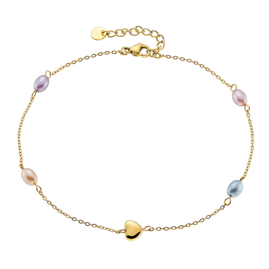 Αλυσίδα ποδιού από ανοξείδωτο ατσάλι με καρδιά και χρωματιστές πέρλες