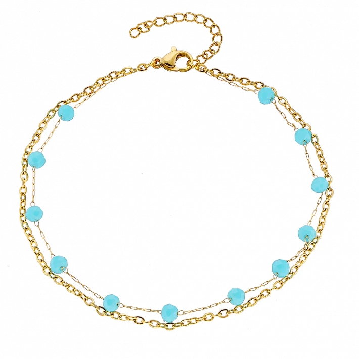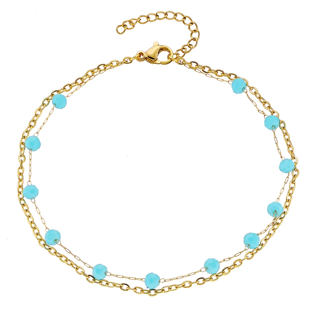 Αλυσίδα ποδιού ατσάλινη διπλή με τυρκουάζ πέτρες