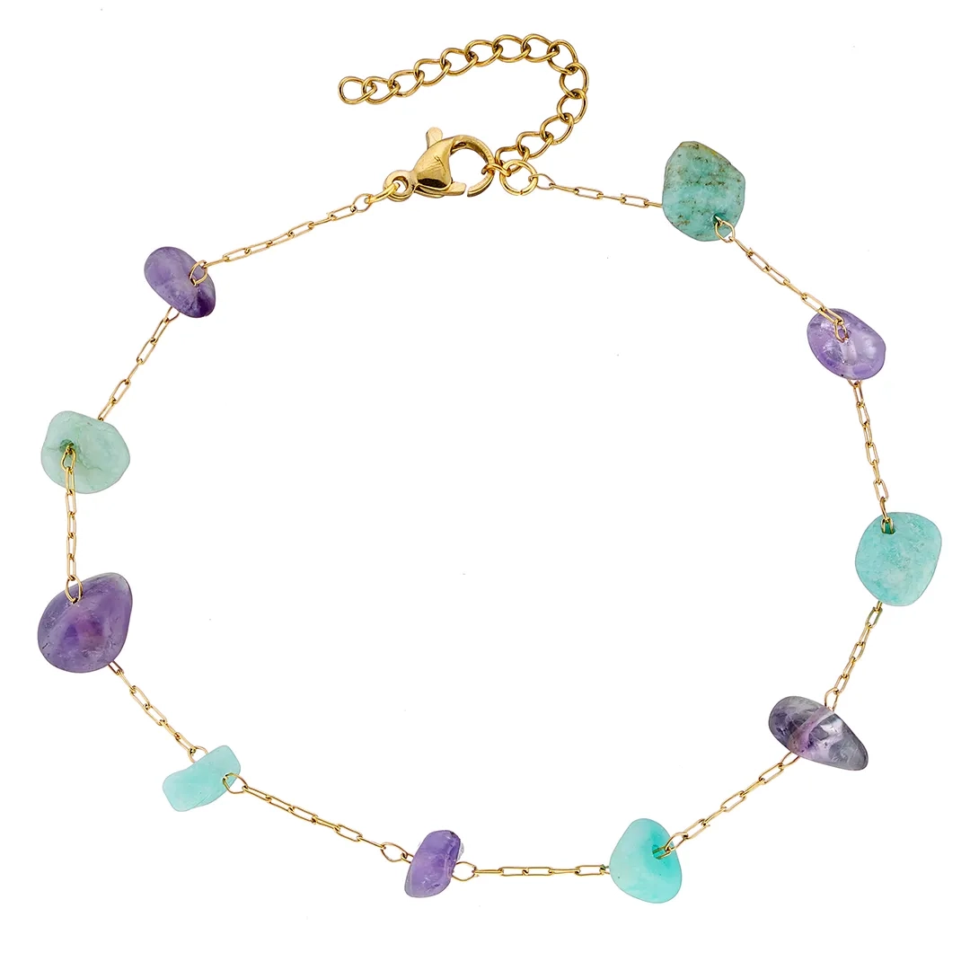 Αλυσίδα ποδιού ατσάλινη με πέτρες