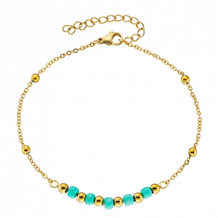 Αλυσίδα ποδιού ατσάλινη με τυρκουάζ πέτρες