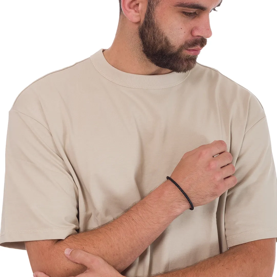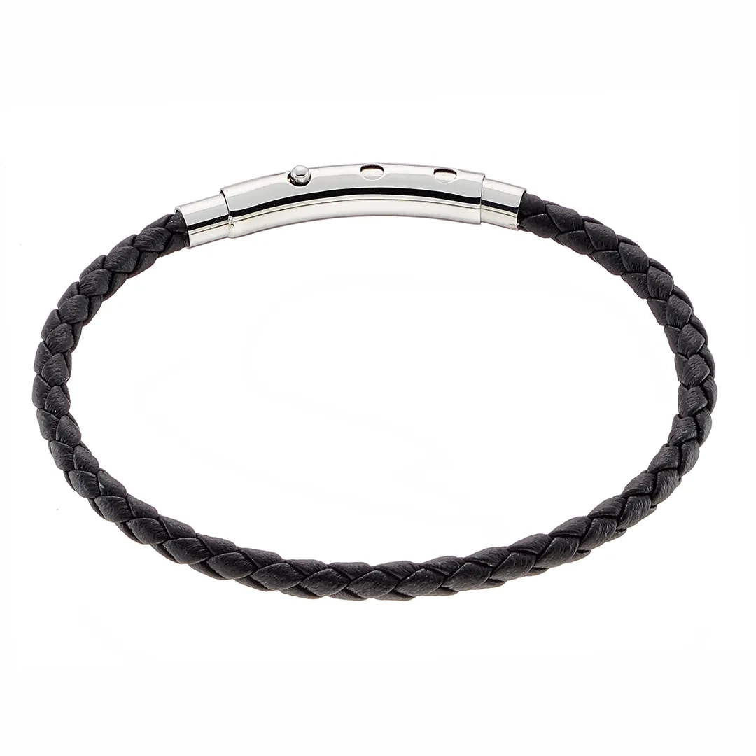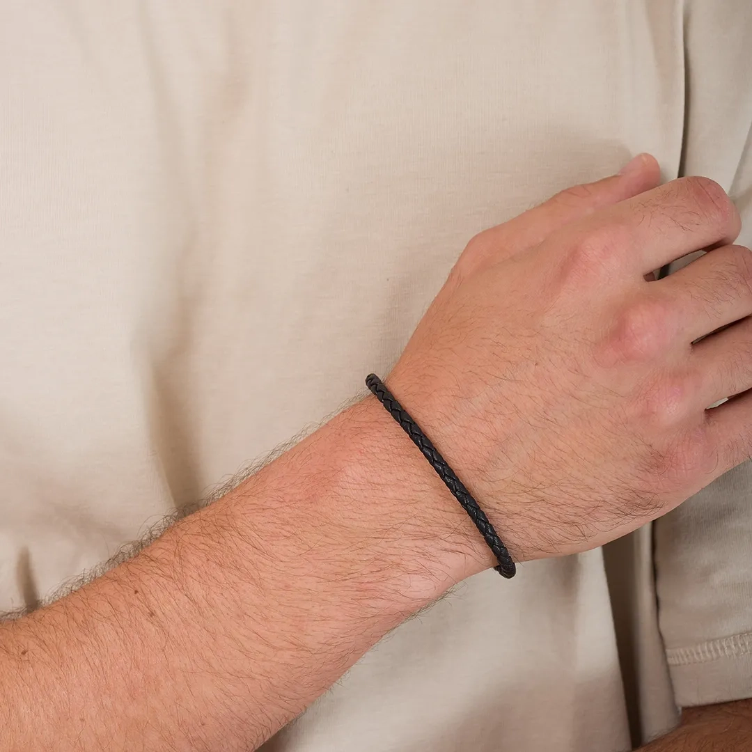 Βραχιόλι ατσάλινο με δέρμα μαύρο και κούμπωμα μαγνήτη