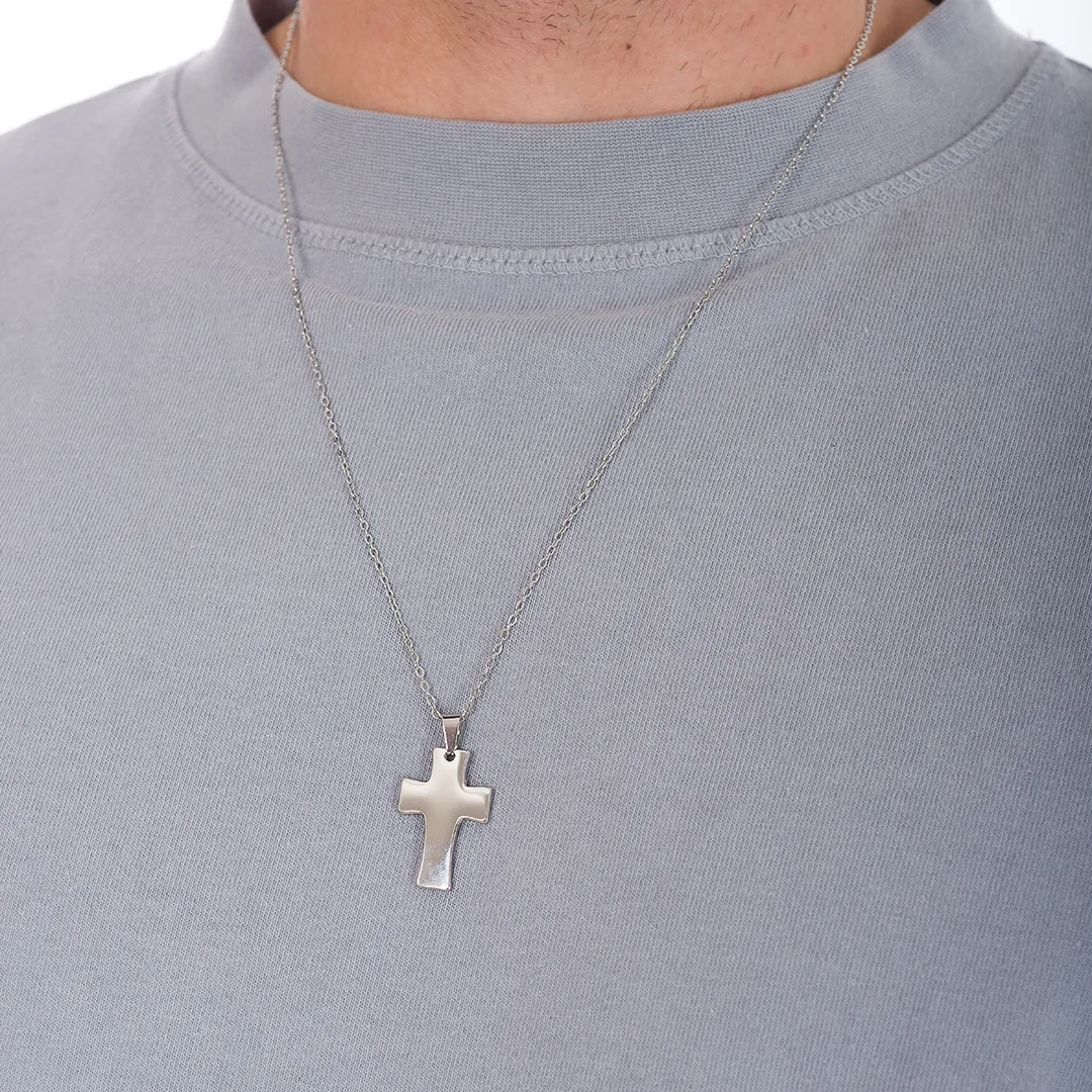 Κολιέ σταυρός με αλυσίδα αντρικός ατσάλι