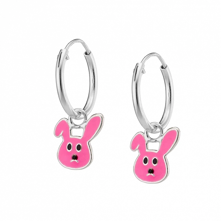 Ασημένια παιδικά σκουλαρίκια κρίκοι με λαγουδάκι