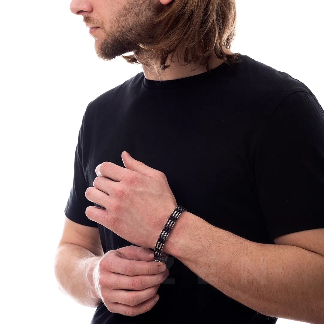 Χειροπέδα ανδρική ατσάλι σε ασημί με μαύρο
