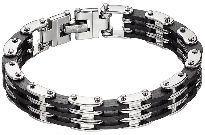 Χειροπέδα ανδρική ατσάλι σε ασημί με μαύρο καουτσούκ