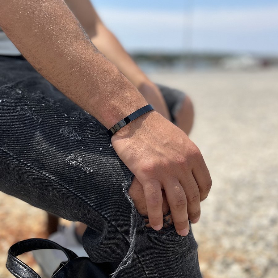 Χειροπέδα ανδρική ατσάλι σε ασημί με μαύρο