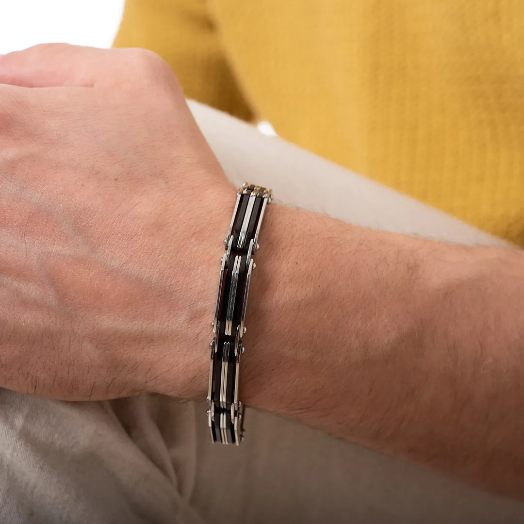 Χειροπέδα ατσάλινη σε ασημί με μαύρο