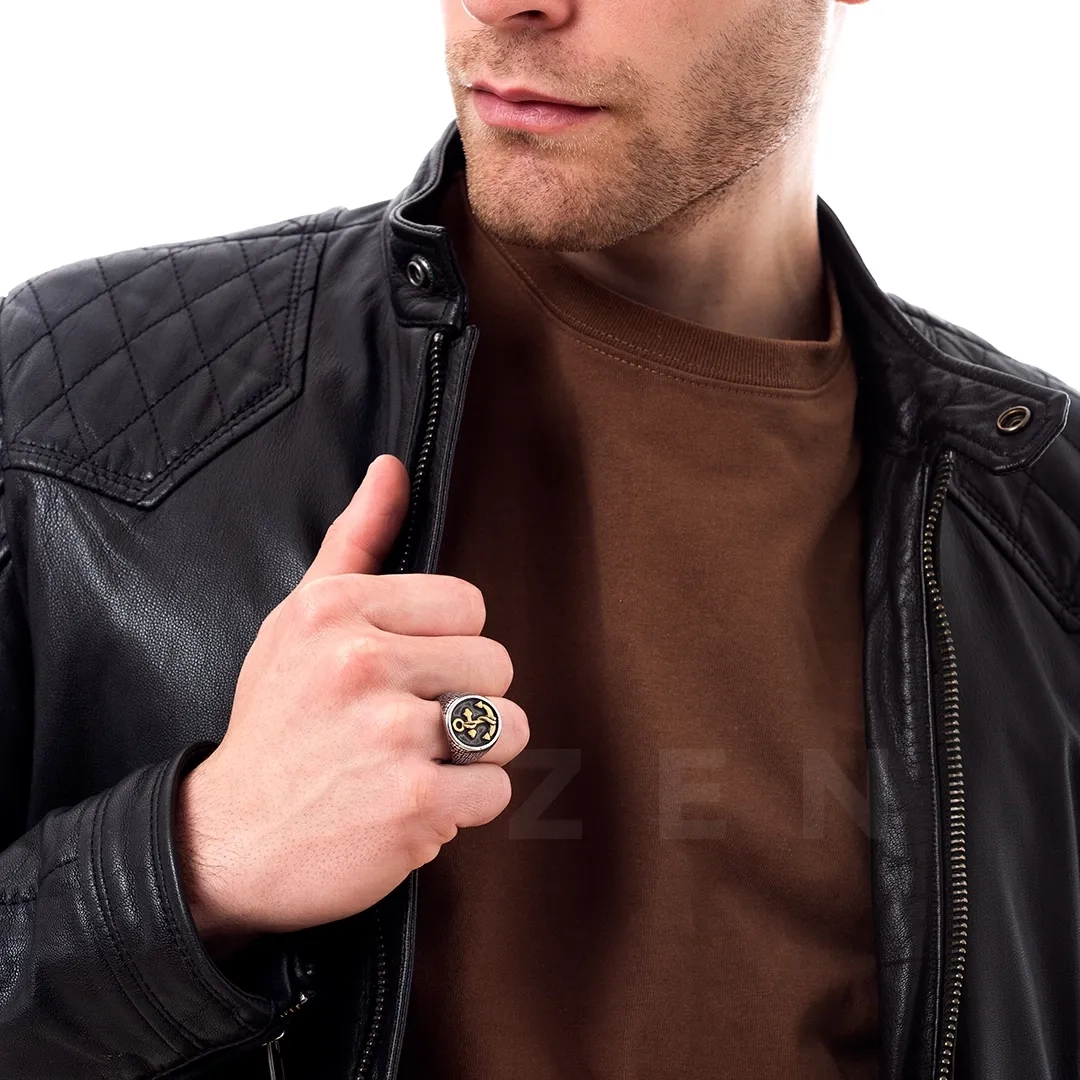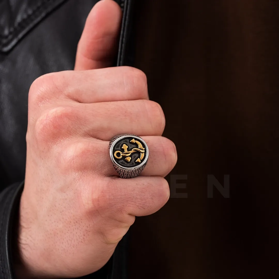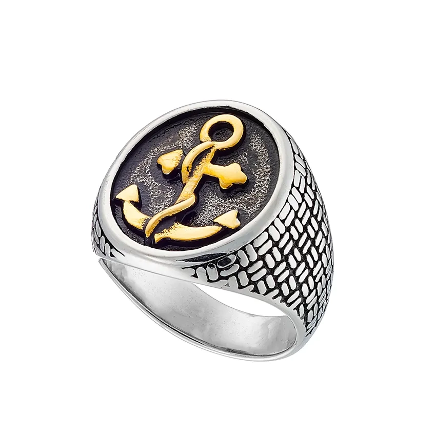 Δαχτυλίδι ανδρικό από ανοξείδωτο ατσάλι ασημόχρυσο οβάλ με άγκυρα
