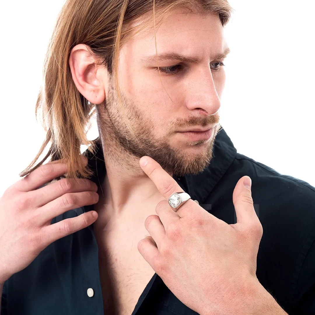 Δαχτυλίδι ανδρικό ατσάλι με μαύρη πέτρα