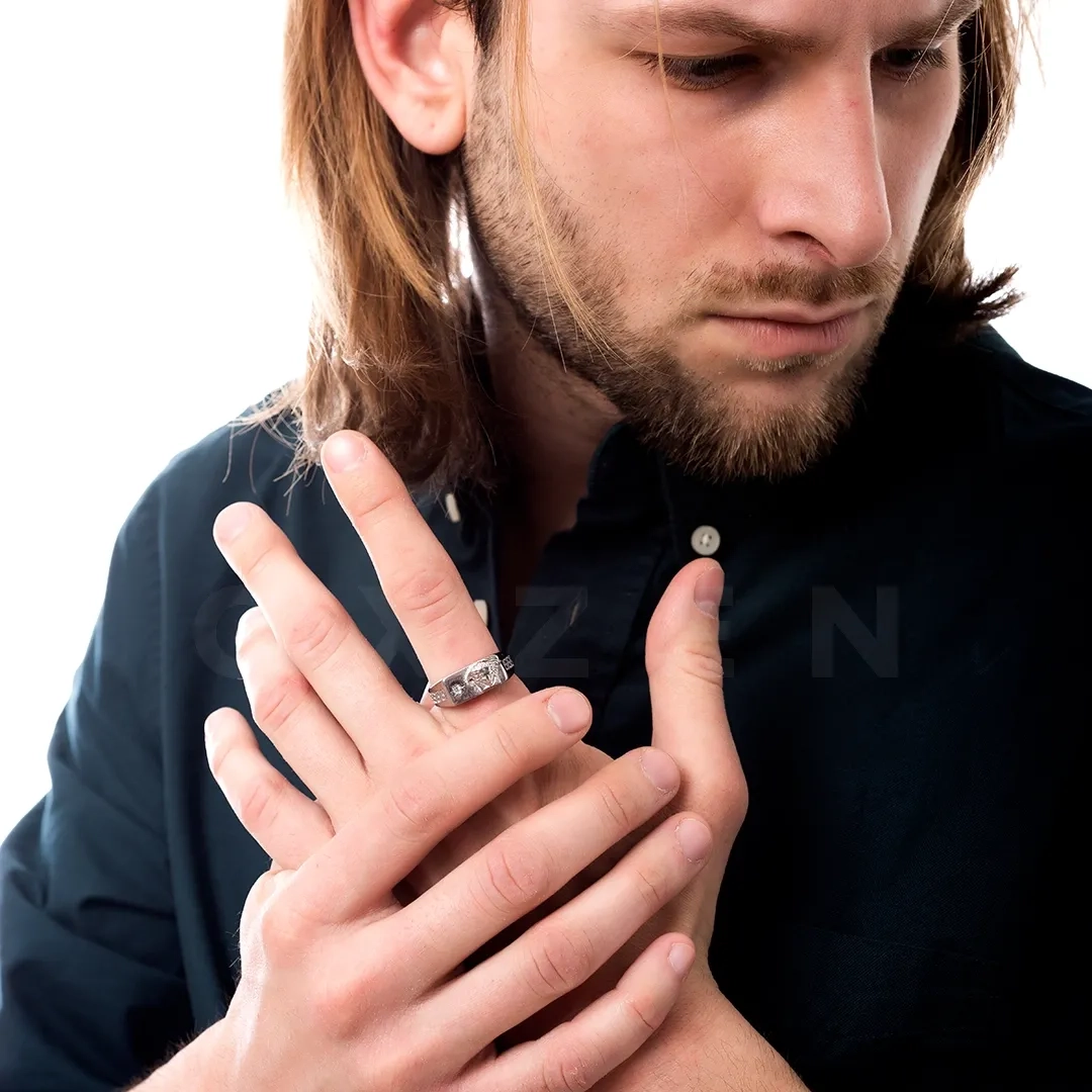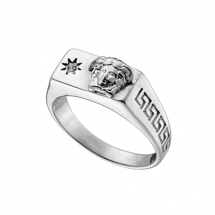 Δαχτυλίδι ανδρικό από ανοξείδωτο μέδουσα και λευκό ζιργκόν