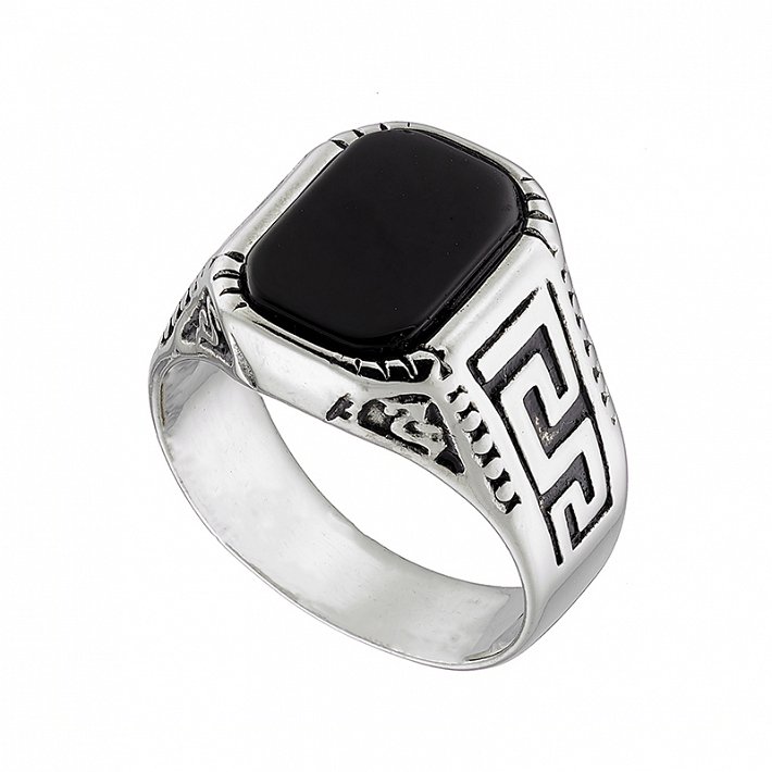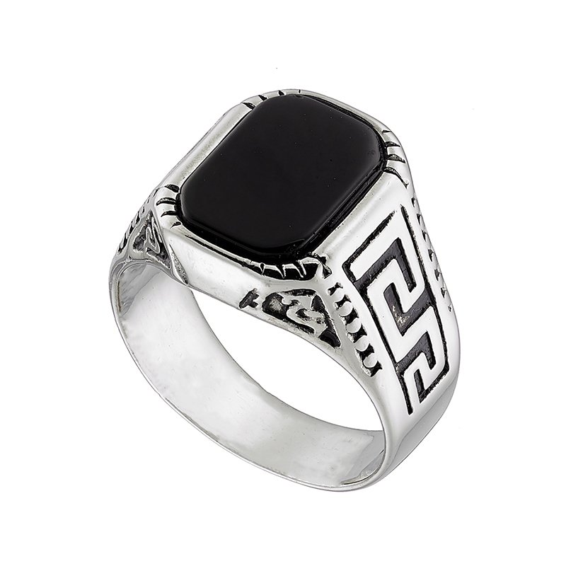 Δαχτυλίδι από ανοξείδωτο ατσάλι, ανδρικό με μαύρη πέτρα όνυχα