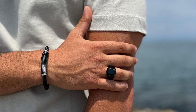 Δαχτυλίδι ανδρικό ατσάλι με μαύρη πέτρα