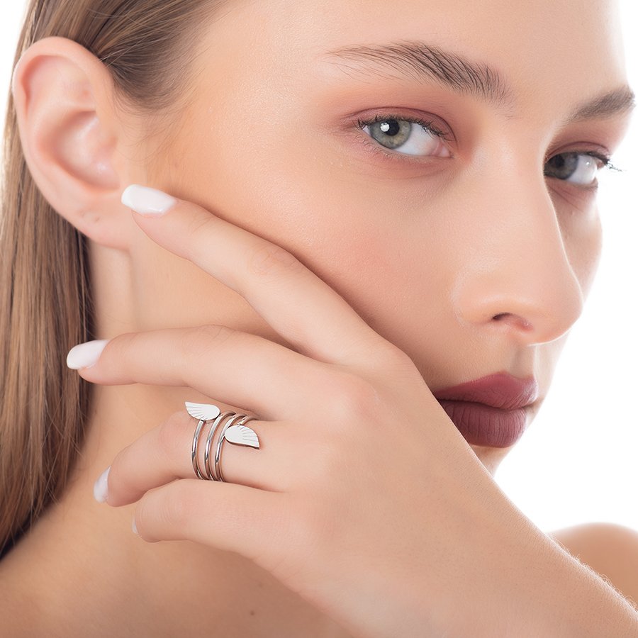 Δαχτυλίδι από ανοξείδωτο ατσάλι διπλό φτερό