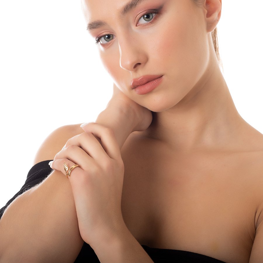 Δαχτυλίδι από ανοξείδωτο ατσάλι επιχρυσωμένο φτερό