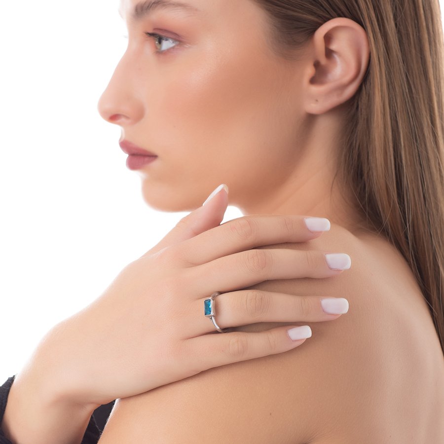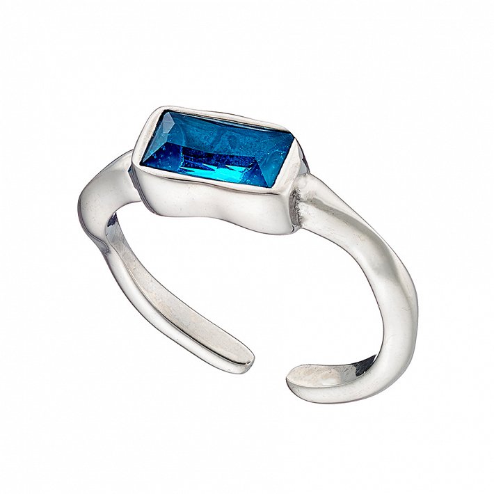 Δαχτυλίδι από ανοξείδωτο ατσάλι με γαλάζιο ζιργκόν free size
