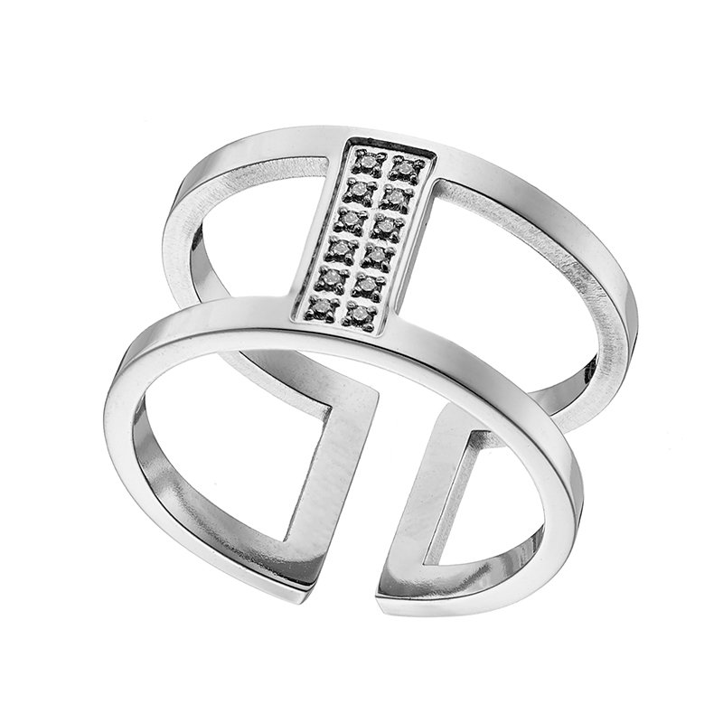 Oxzen δαχτυλίδι ατσάλινο με πέτρες ζιργκόν