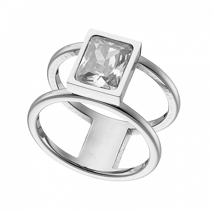 Δαχτυλίδι από ανοξείδωτο ατσάλι, με λευκή πέτρα ζιργκόν