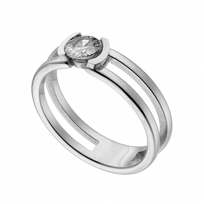 Δαχτυλίδι ατσάλινο μονόπετρο με πέτρα ζιργκόν