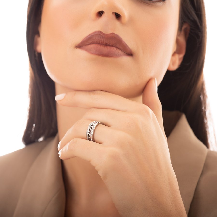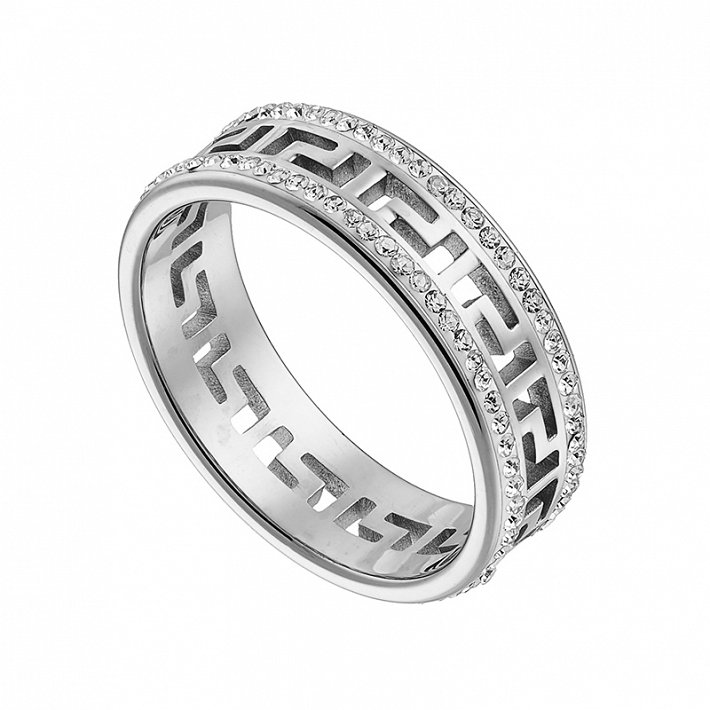 Δαχτυλίδι από ανοξείδωτο ατσάλι, βέρα με μαίανδρο και κρύσταλλα CZ
