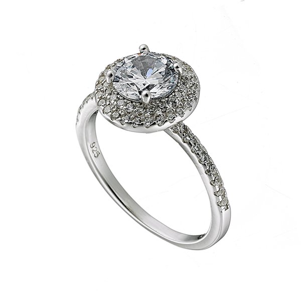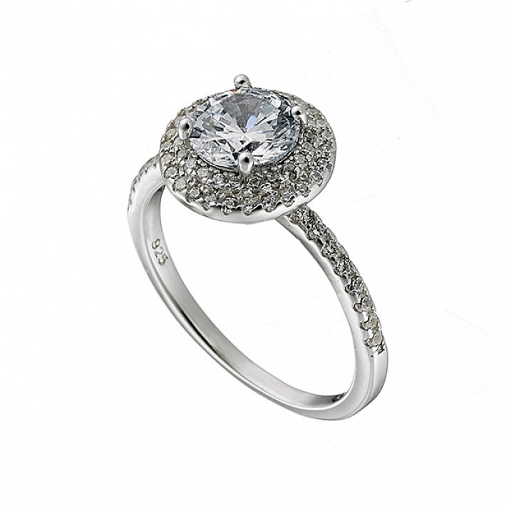 Δαχτυλίδι ασημένιο ροζέτα με στρογγυλή πέτρα ζιργκόν