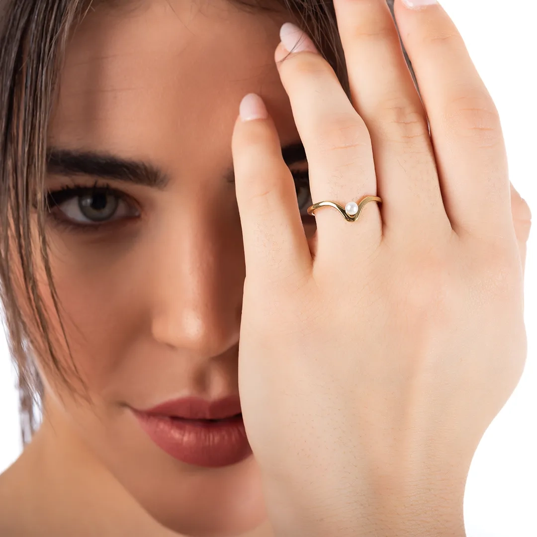 Δαχτυλίδι ατσάλινο λεπτό με πέρλα