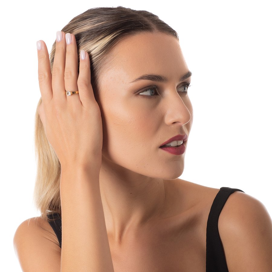 Δαχτυλίδι ατσάλινο σε ροζ χρυσό τριπλό με πέτρα ζιργκόν