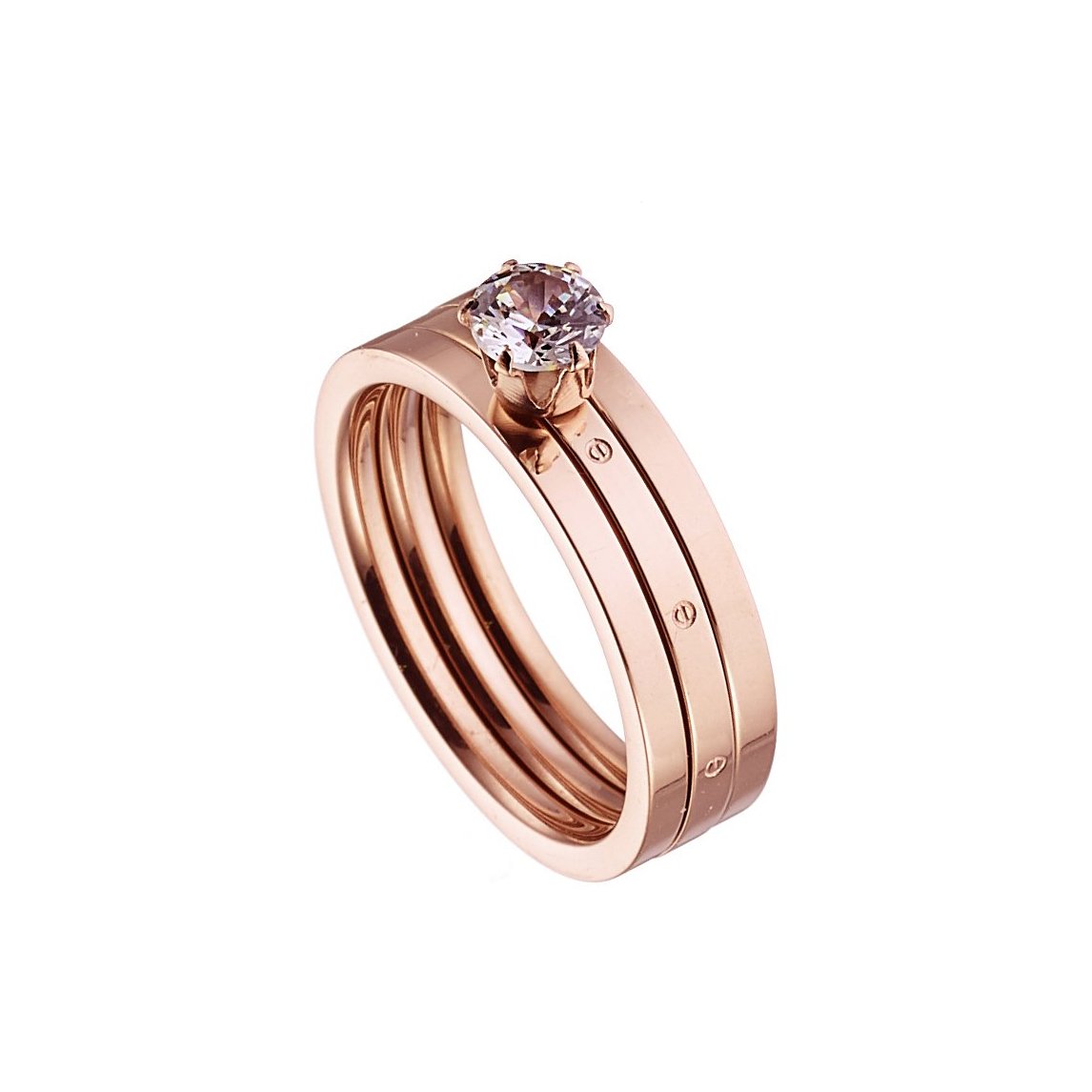 Δαχτυλίδι ατσάλινο σε ροζ χρυσό τριπλό με πέτρα ζιργκόν