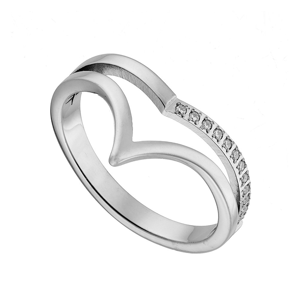 Δαχτυλίδι ατσάλινο σε σχήμα V με λευκά ζιργκόν