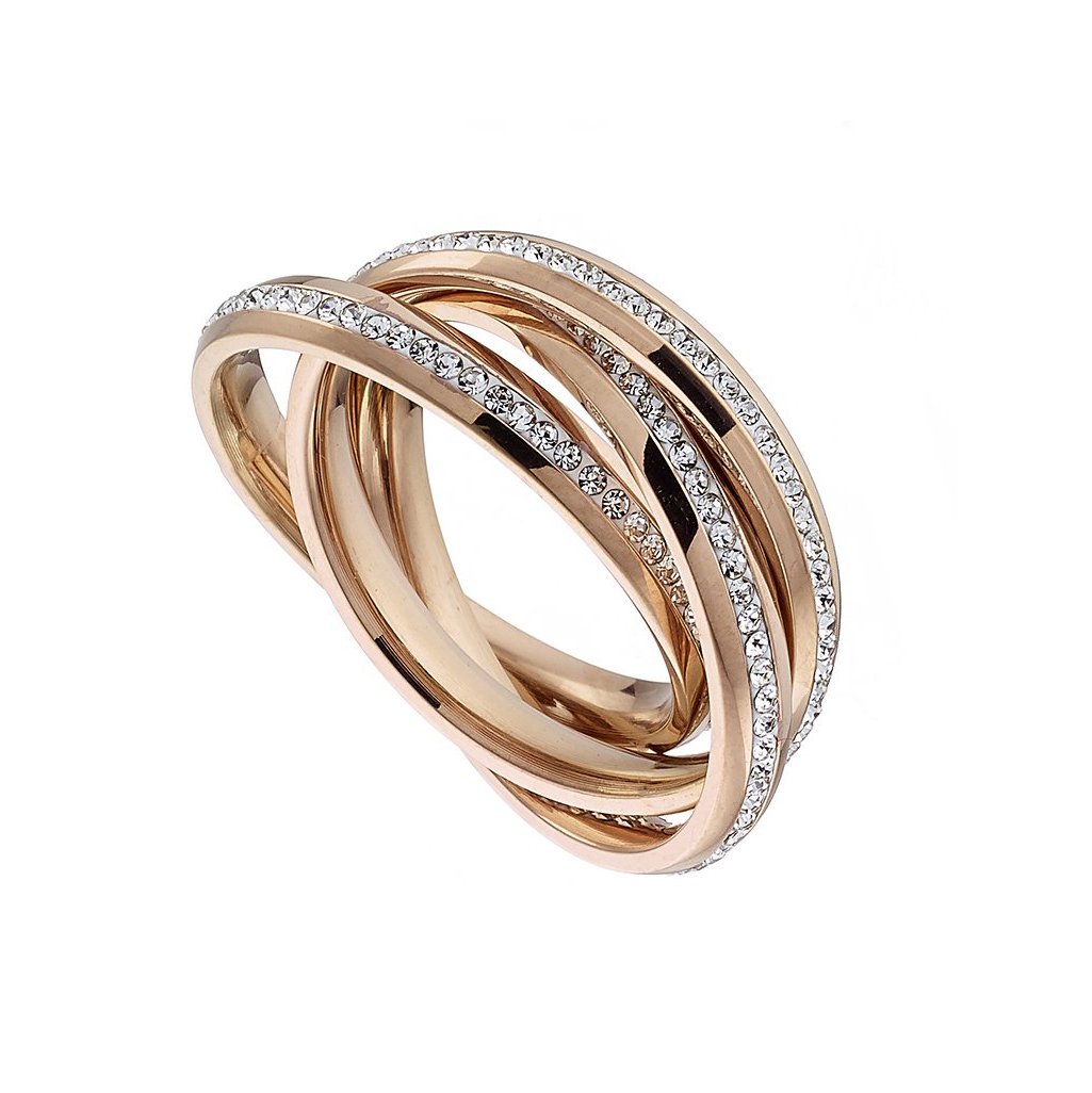 Δαχτυλίδι ατσάλινο σε ροζ χρυσό τριπλό με πέτρα ζιργκόν