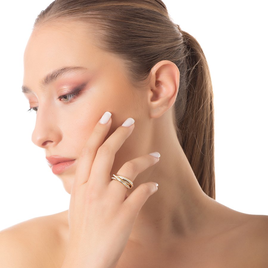 Δαχτυλίδι ατσάλινο τριπλές βέρες ολόσειρες με λευκές πέτρες