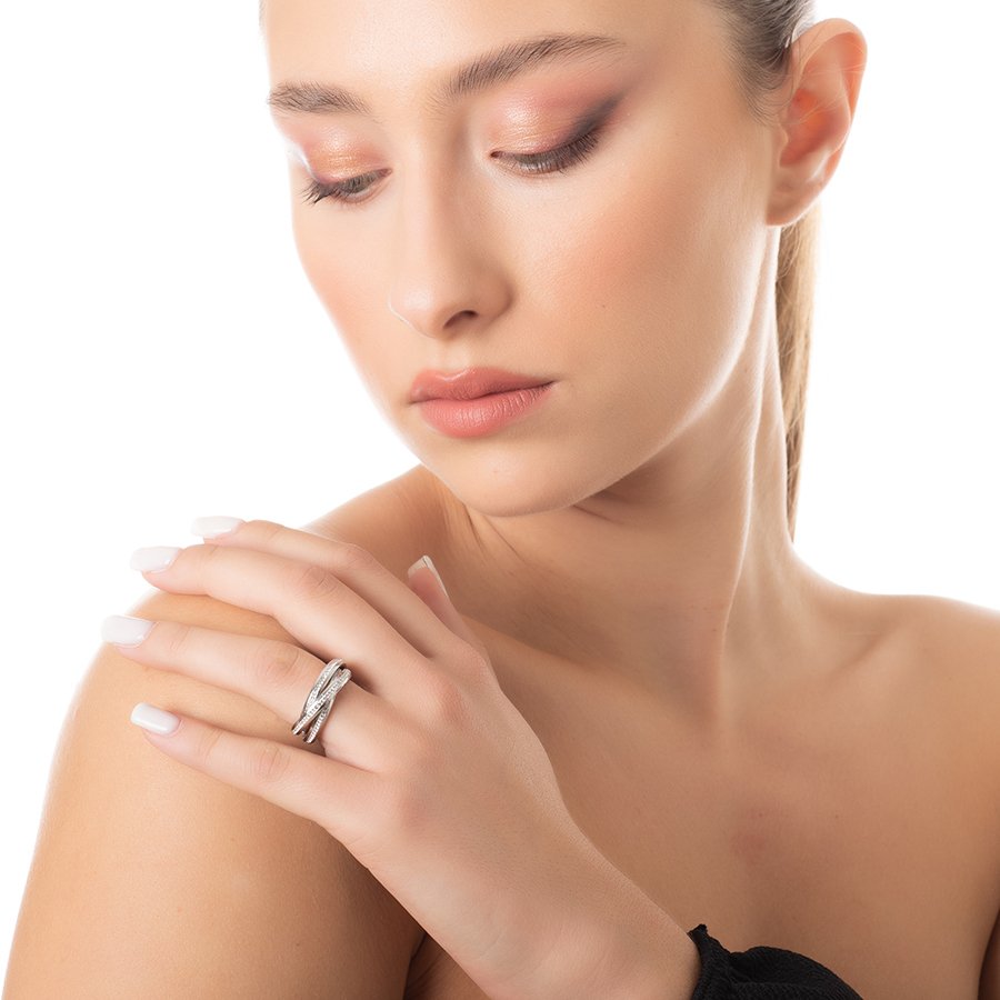Δαχτυλίδι ατσάλινο σε ροζ χρυσό τριπλό με πέτρα ζιργκόν
