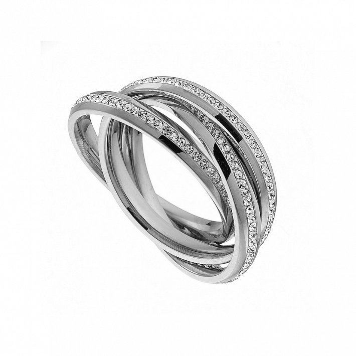 Δαχτυλίδι ατσάλινο τριπλές βέρες ολόσειρες με λευκές πέτρες