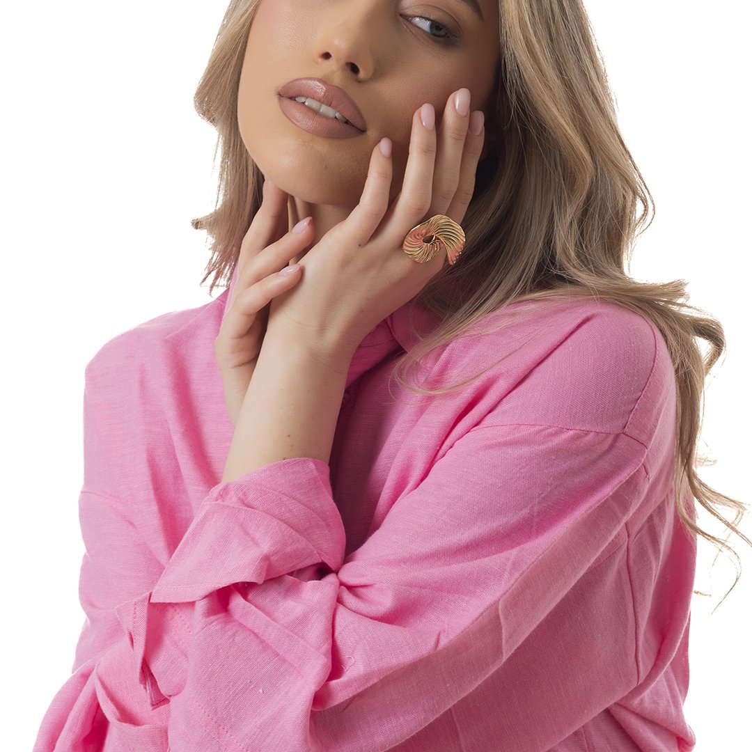 Δαχτυλίδι ατσάλινο σε ροζ χρυσό τριπλό με πέτρα ζιργκόν