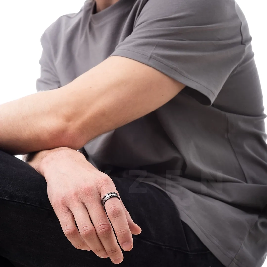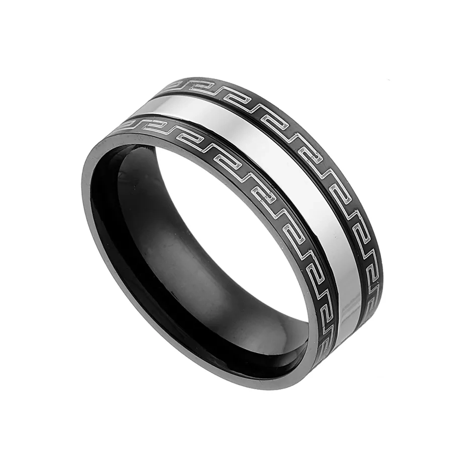 Δαχτυλίδι βέρα ανδρική από ανοξείδωτο ατσάλι, ασημί με μαύρο μαίανδρο
