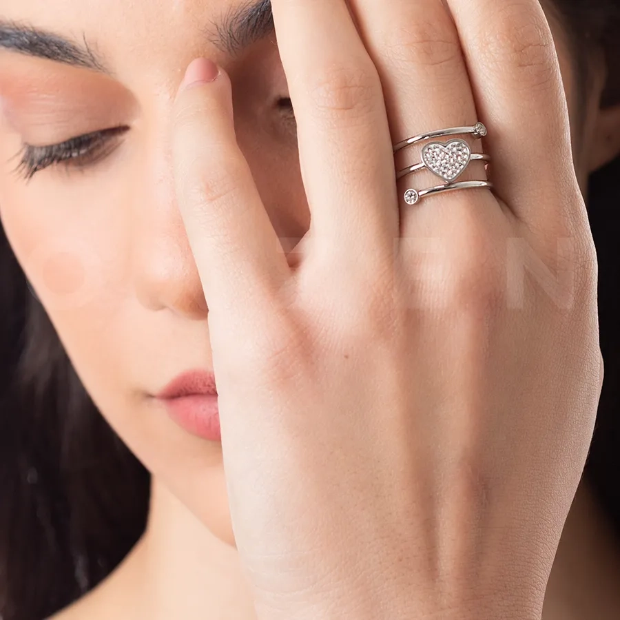 Oxzen δαχτυλίδι ατσάλινο με πέτρες ζιργκόν