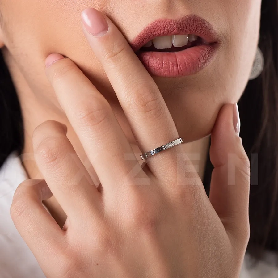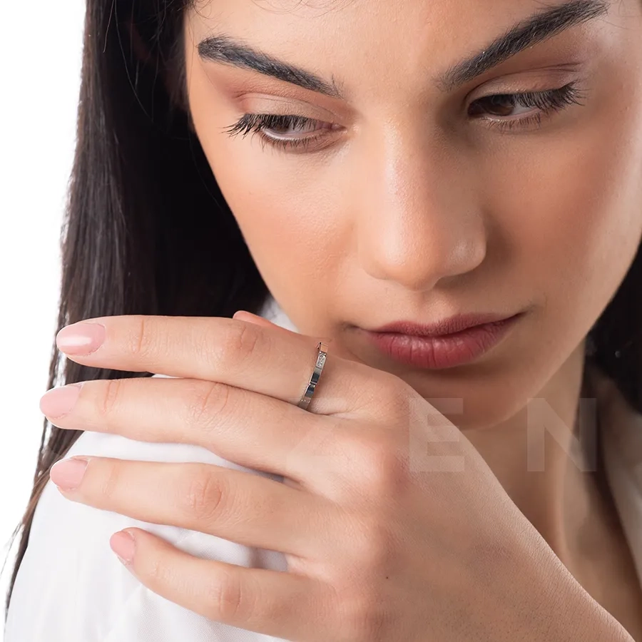 Γυναικείο δαχτυλίδι από ανοξείδωτο ατσάλι βέρα με ένα λευκό ζιργκόν