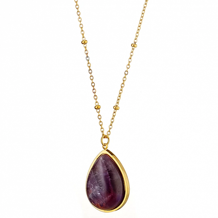 Γυναικείο κολιέ από ανοξείδωτο ατσάλι επιχρυσωμένο με μωβ πέτρα
