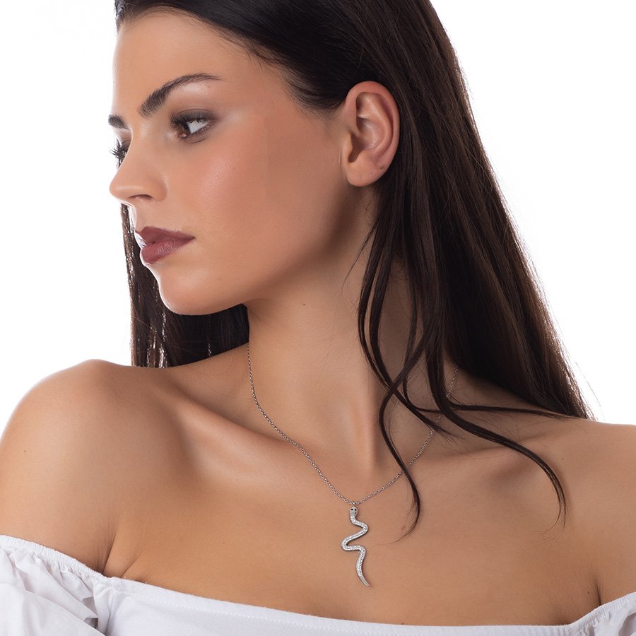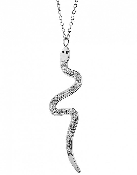 Κολιέ από ανοξείδωτο ατσάλι φίδι με λευκά κρύσταλλα