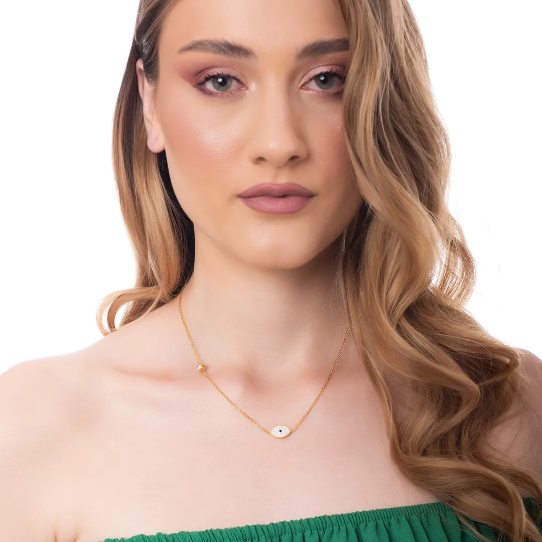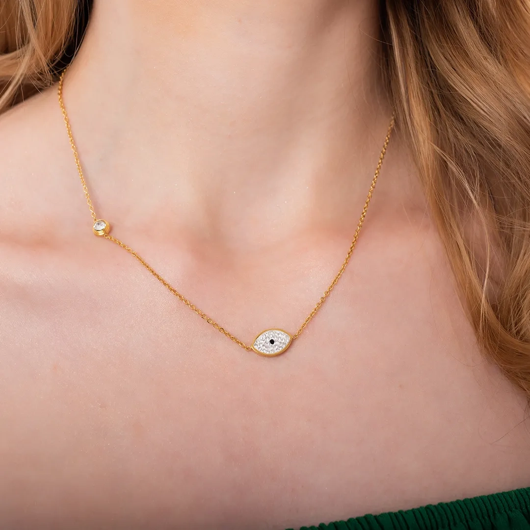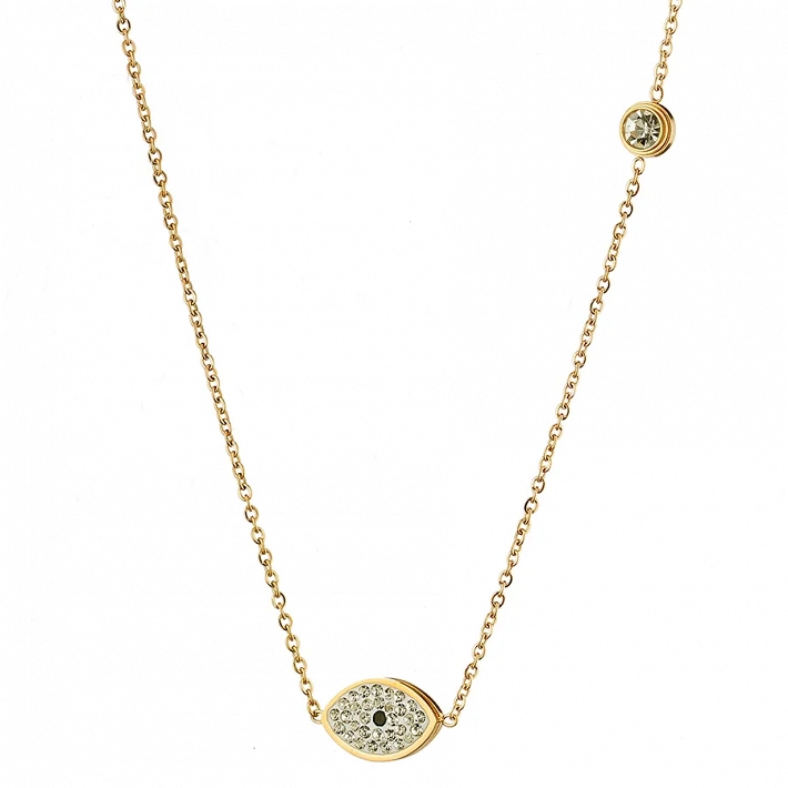 Κολιέ από ανοξείδωτο ατσάλι ματάκι με λευκά κρύσταλλα και λευκό ζιργκόν