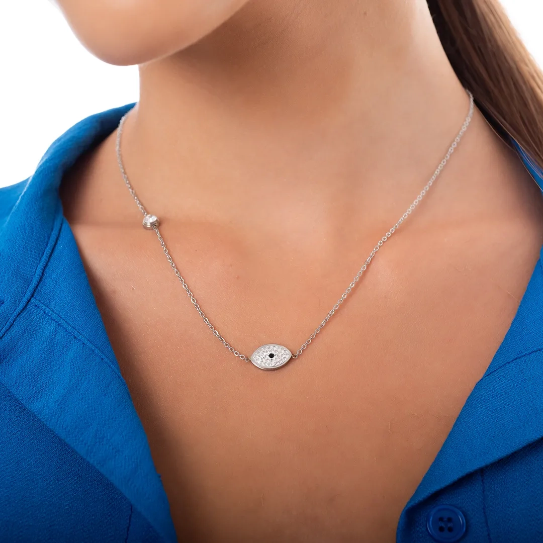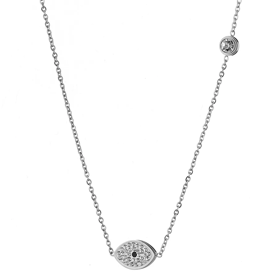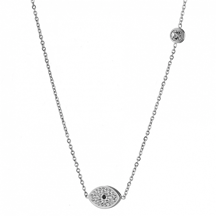 Κολιέ από ανοξείδωτο ατσάλι ματάκι με λευκά κρύσταλλα και λευκό ζιργκόν