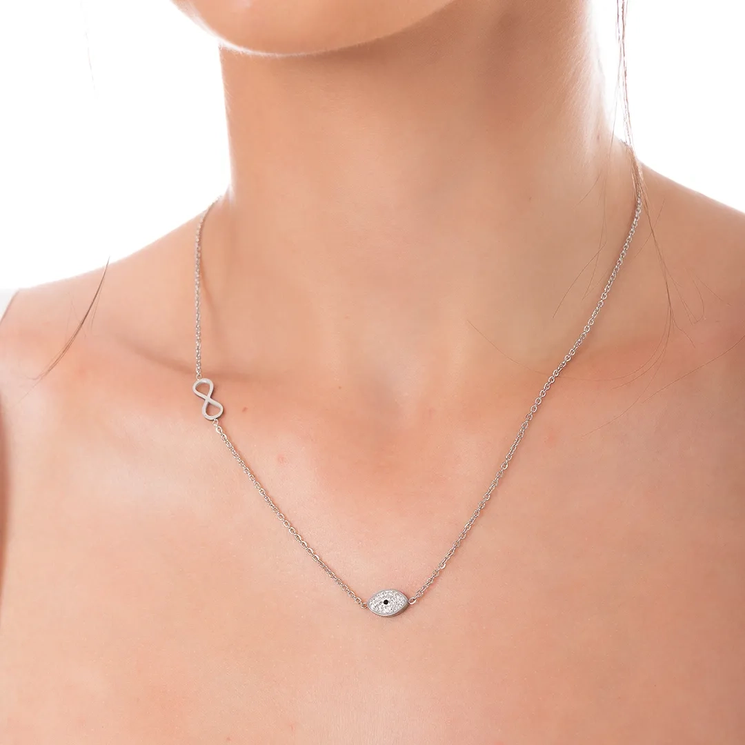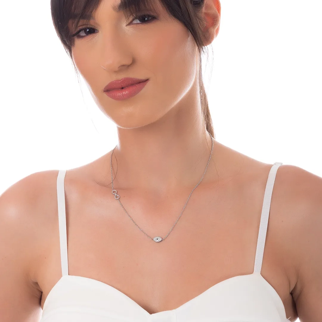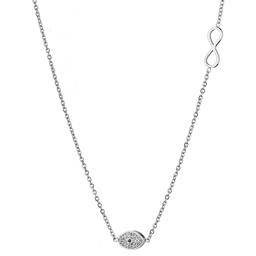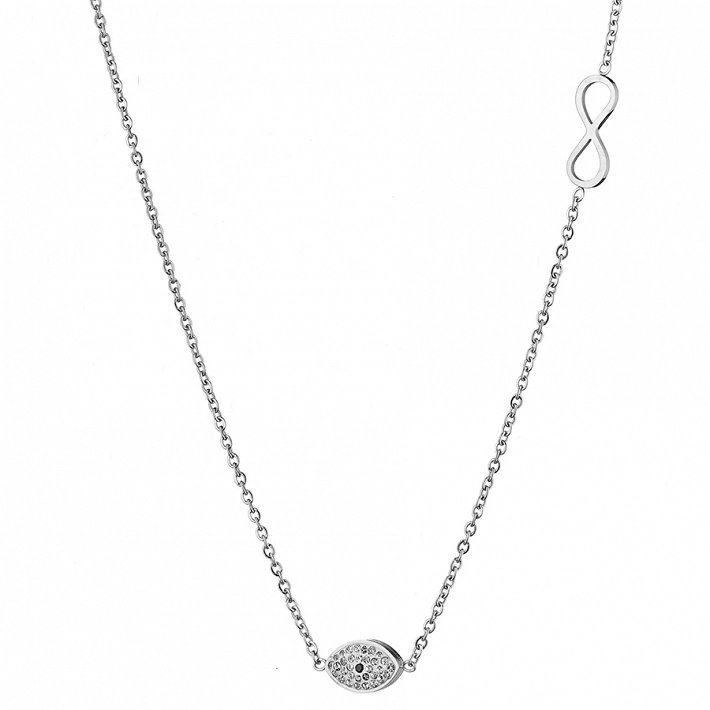 Κολιέ από ανοξείδωτο ατσάλι με άπειρο και ματάκι με λευκά κρύσταλλα