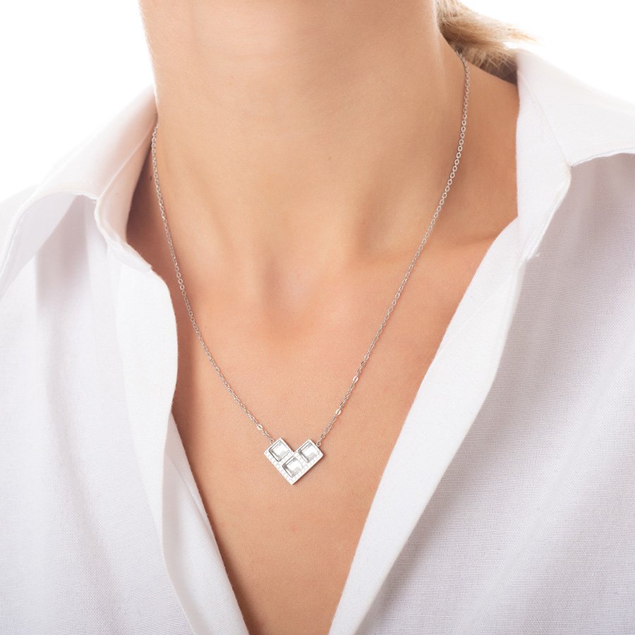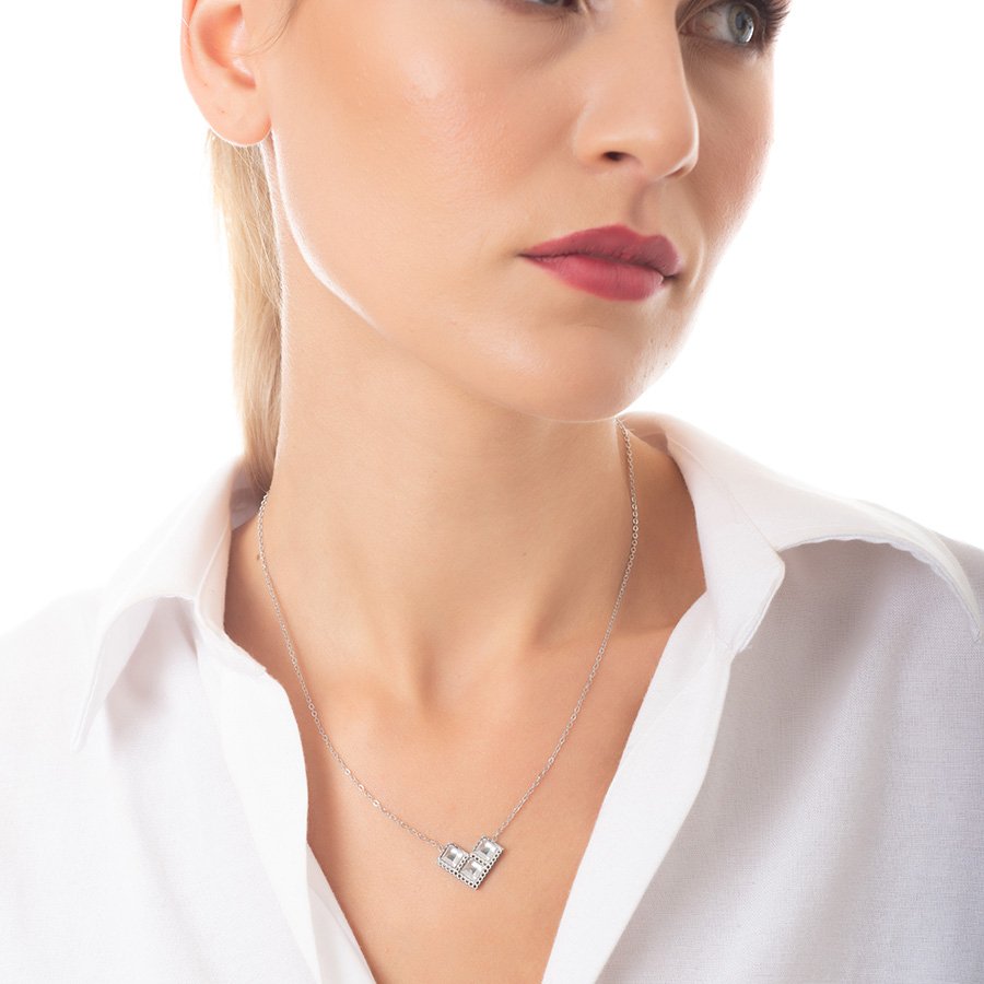 Κολιέ από ανοξείδωτο ατσάλι με λευκά κρύσταλλα