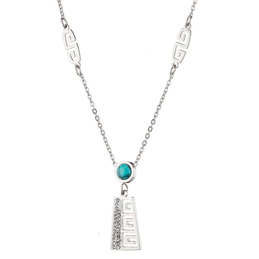 Κολιέ από ανοξείδωτο ατσάλι με μαίανδρο τιρκουάζ πέτρα και λευκά κρύσταλλα