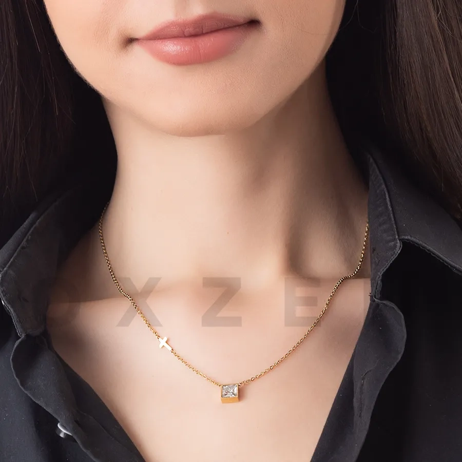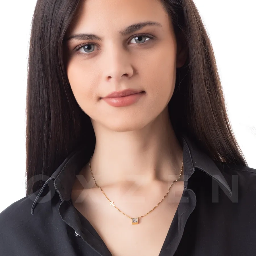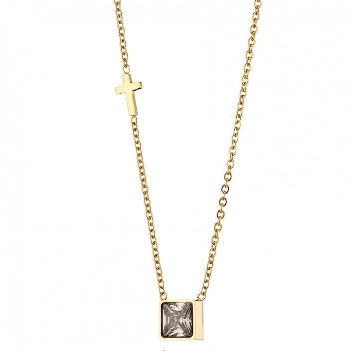 Κολιέ ατσάλινο μαμά με πέτρα ζιργκόν