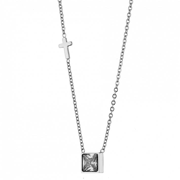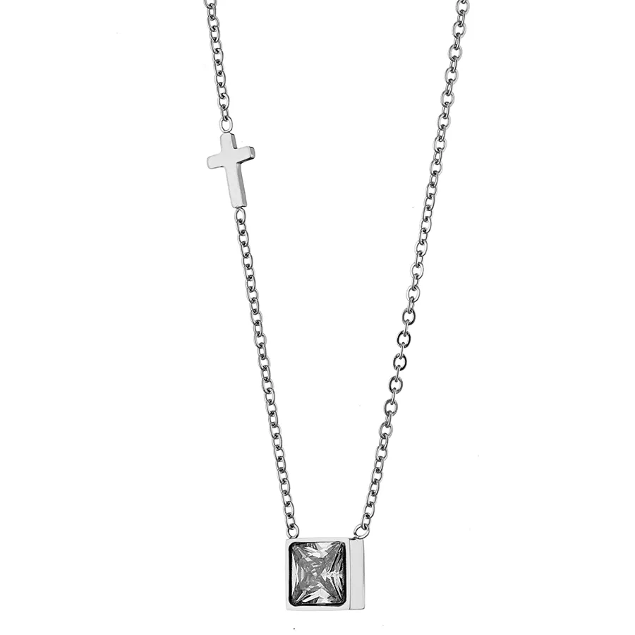 Κολιέ ατσάλινο μαμά με πέτρα ζιργκόν