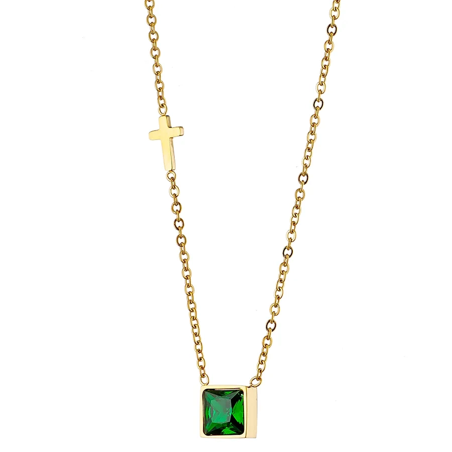 Κολιέ ατσάλινο μαμά με πέτρα ζιργκόν