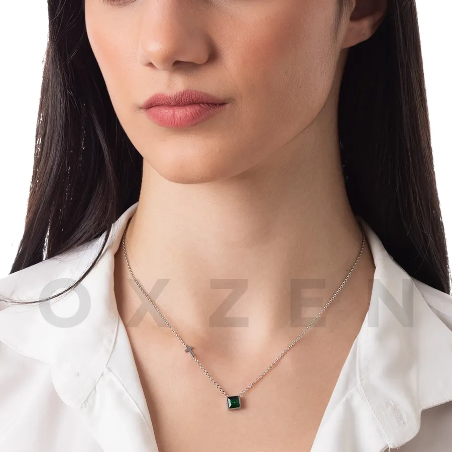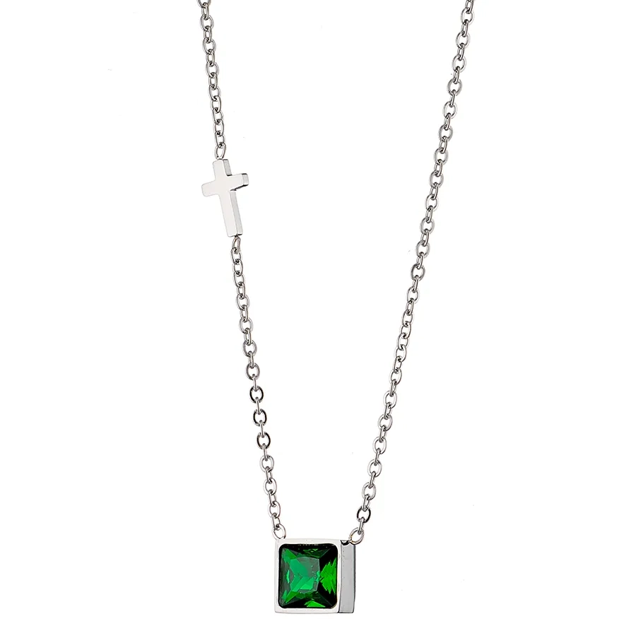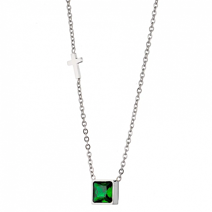 Κολιέ ατσάλινο μαμά με πέτρα ζιργκόν