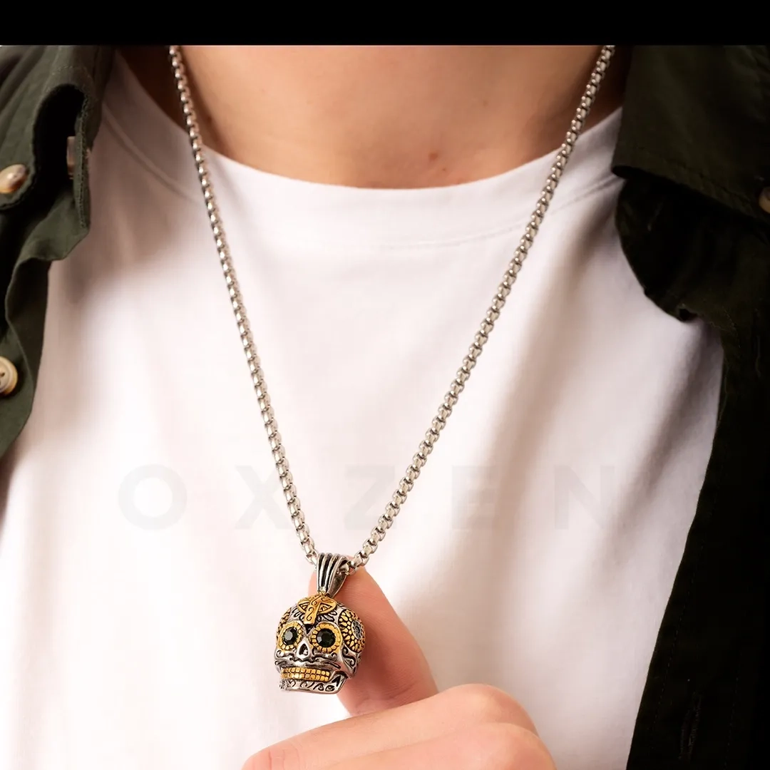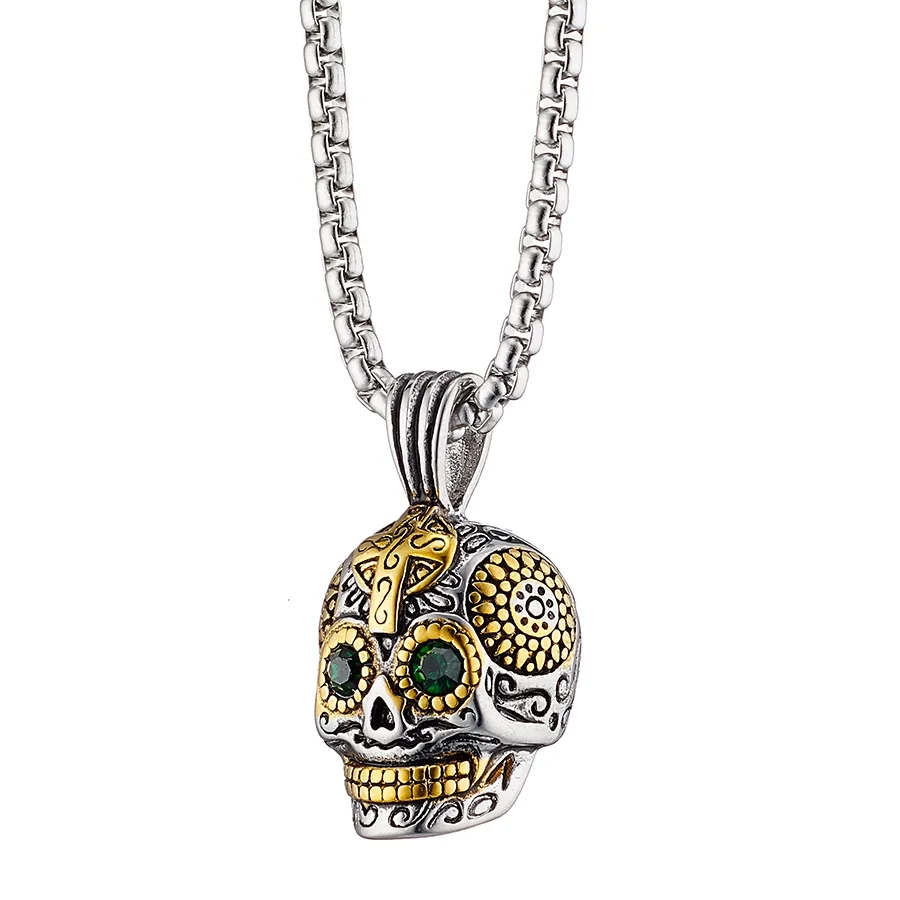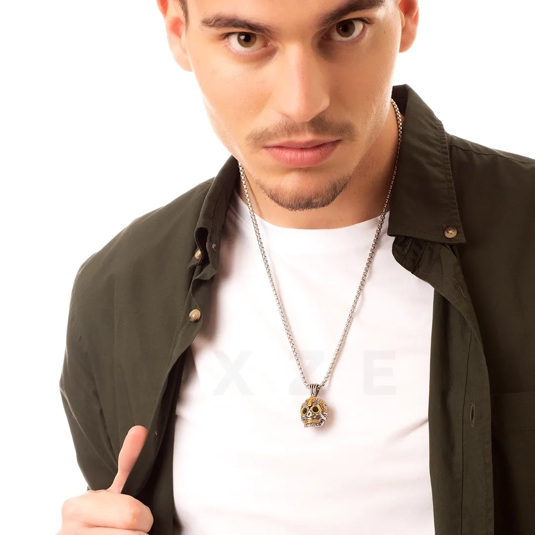 Κολιέ από ανοξείδωτο ατσάλι Unisex ασημόχρυση νεκροκεφαλή