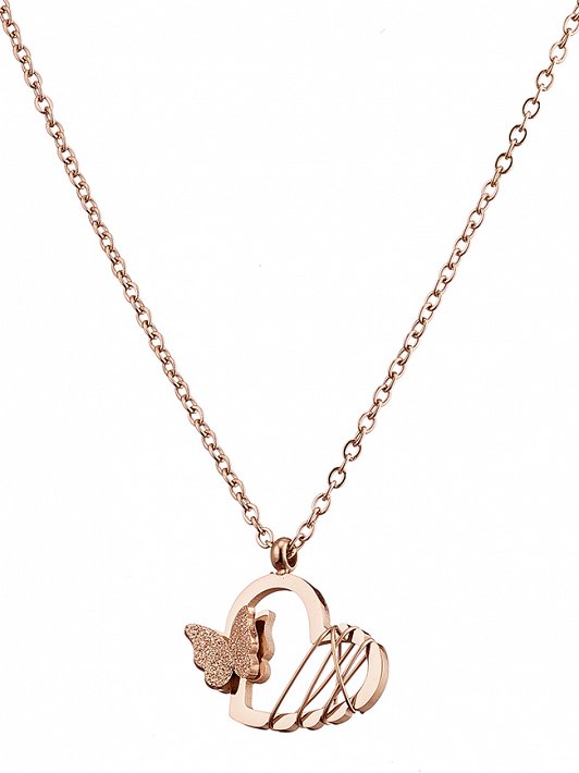 Κολιέ ατσάλινο καρδιά με πεταλούδα