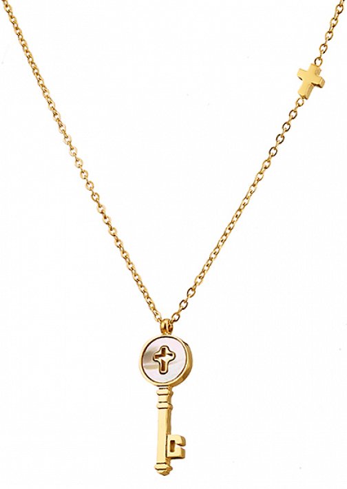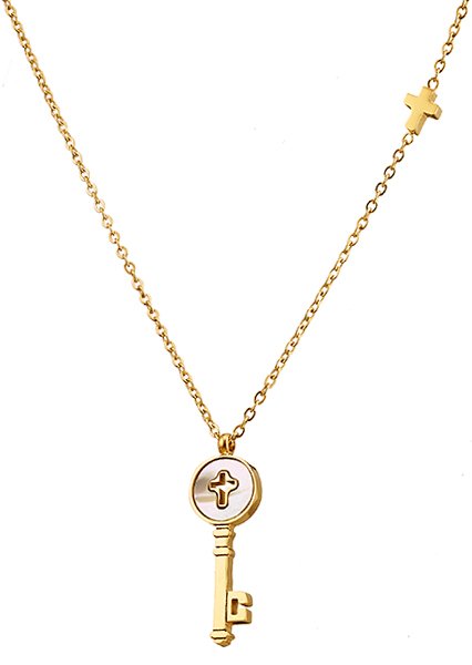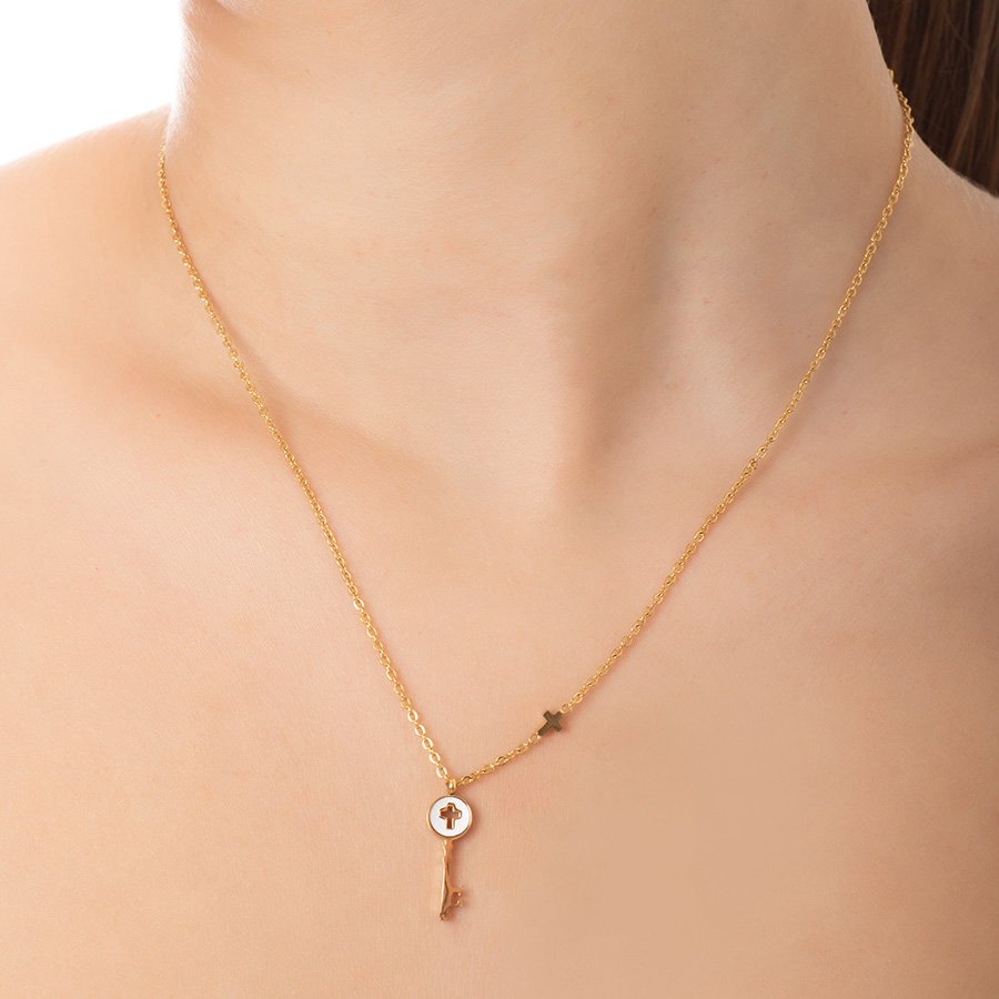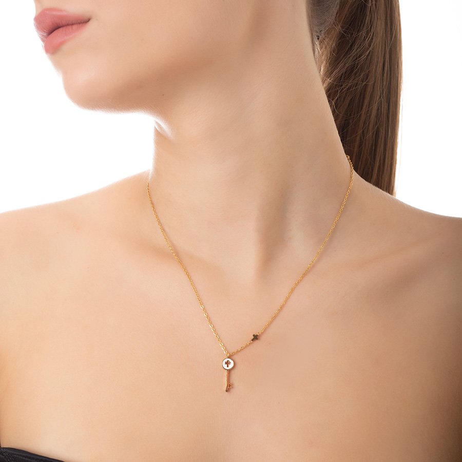 Κολιέ ατσάλινο κλειδί με φίλντισι